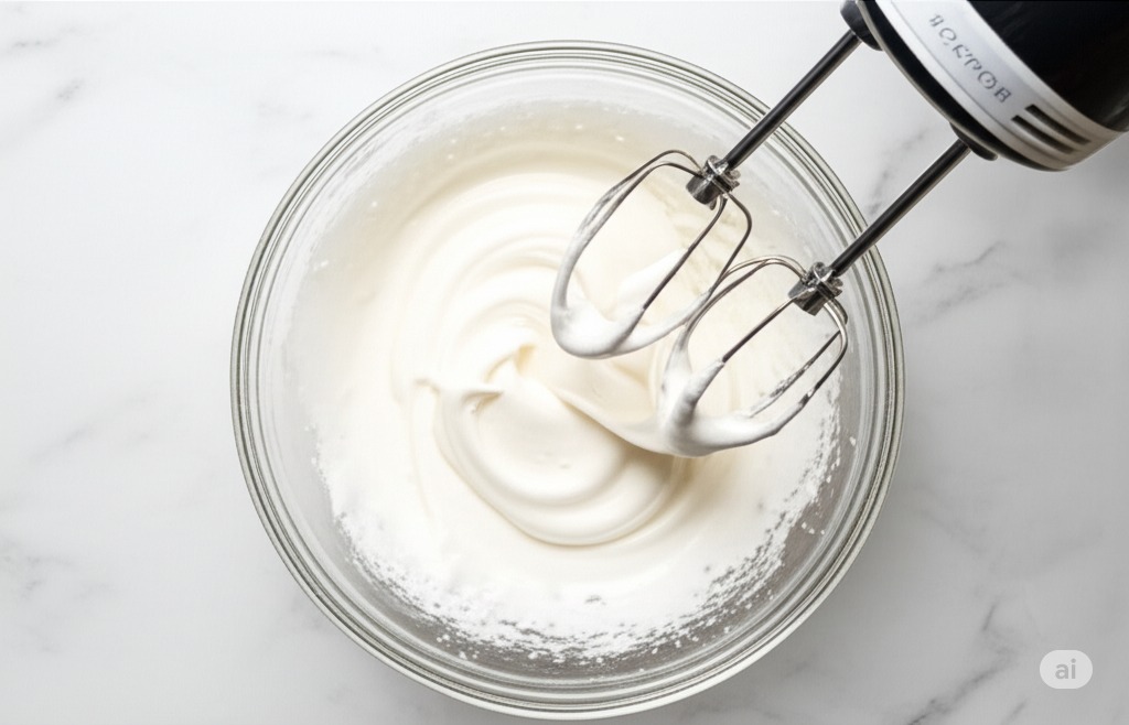 실온의 달걀 흰자를 핸드믹서나 거품기로 휘핑하기 시작합니다.