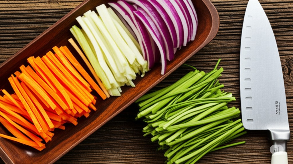 준비된 채소는 먹기 좋은 크기로 썰고, 해산물은 깨끗하게 손질합니다. 돼지고기는 얇게 슬라이스하거나 채 썰어 준비합니다.