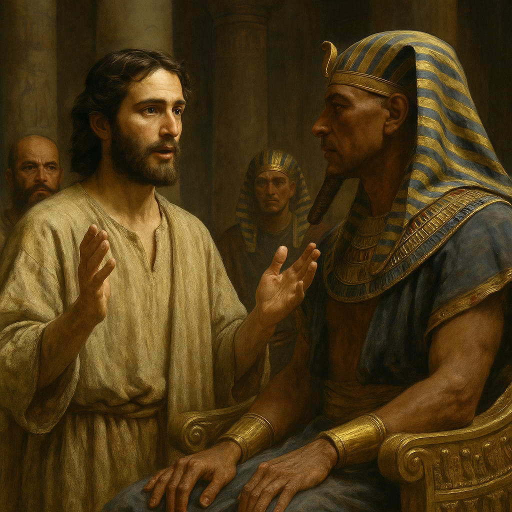 - 요셉은 감옥에서 꺼내져 면도하고 옷을 갈아입은 후, 바로 앞에 섬.