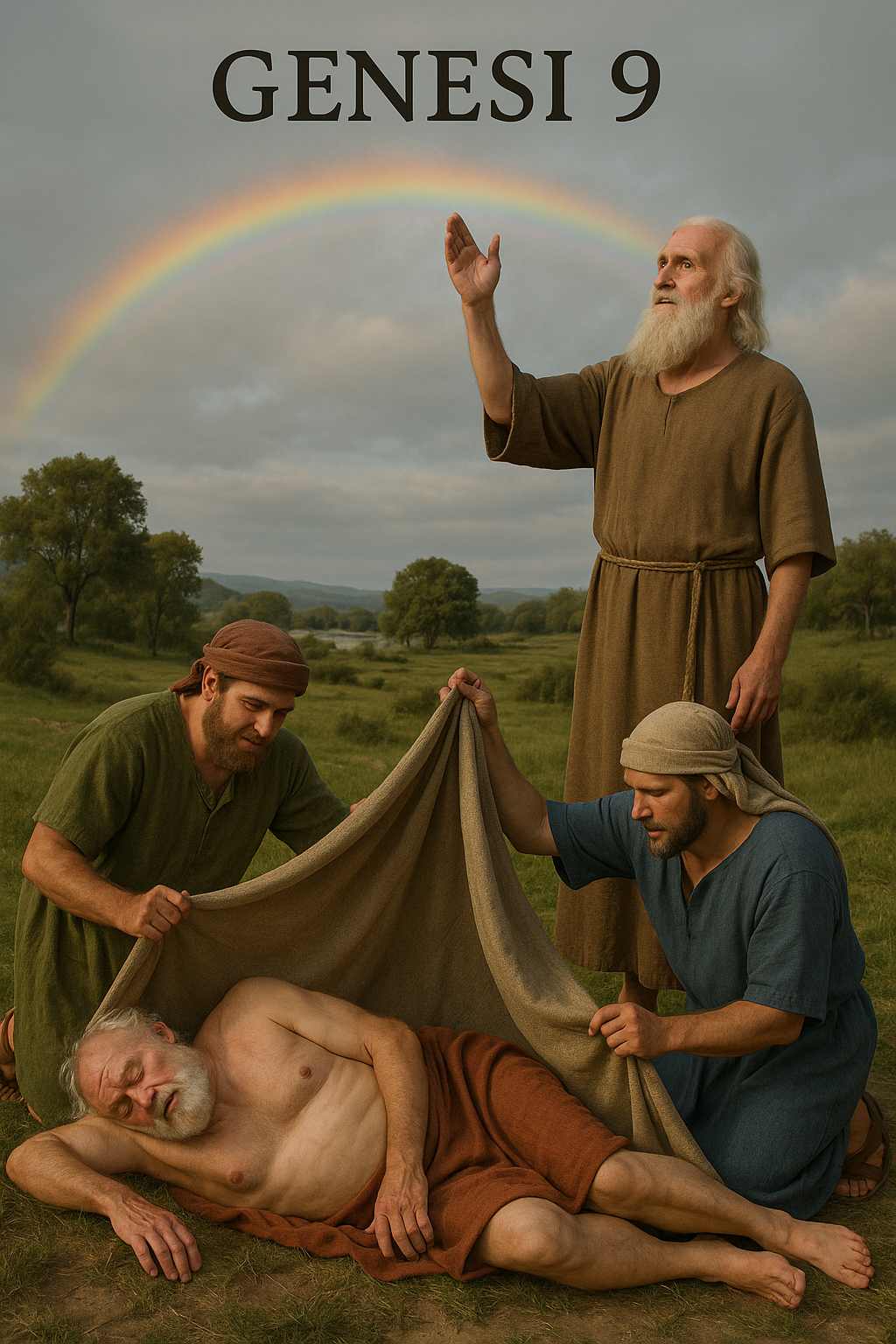 • 다른 두 아들(셈과 야벳)은 노아를 존중하며 그의 벌거벗음을 덮습니다.