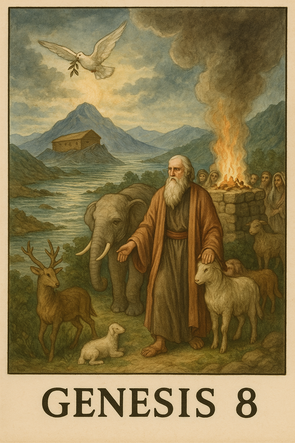 물이 줄고 방주에서 나오는 과정은 심판 이후의 회복과 새 창조를 상징합니다.