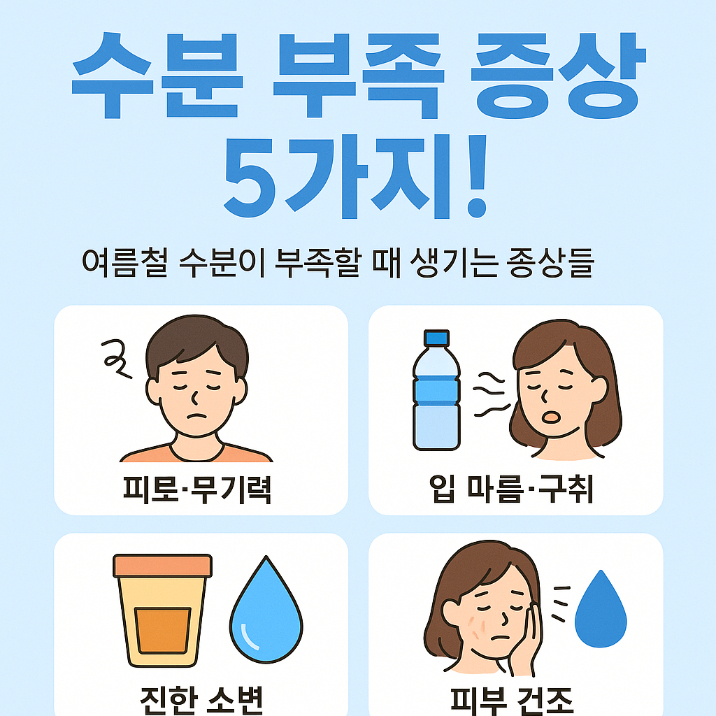 - 여름철 수분 부족은 피로, 입냄새, 피부 건조 등 다양한 증상으로 나타납니다